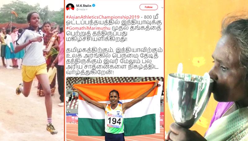 கத்தார் தலைநகர் தோகாவில் ஆசிய தடகள சாம்பியன்ஷிப் போட்டிகள் நடந்துமுடிந்தன. இந்தப் போட்டியில் 17 பதக்கங்களுடன் இந்தியா 4-வது இடத்தைப் பிடித்தது. இந்தத் தொடரில் பங்கேற்ற திருச்சியைச் சேர்ந்த கோமதி மாரிமுத்து 800 மீட்டர் ஓட்டப் போட்டியில் தங்கம் வென்று இந்தியாவுக்கு பெருமைத் தேடி தந்தார். அவருக்கு பாராட்டு தெரிவித்த திமுக தலைவர் மு.க.ஸ்டாலின், 10 லட்சம் ரூபாய் திமுக சார்பில் பரிசாக வழங்கப்படும் என்றும் அறிவித்தார்.