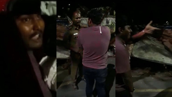 இந்த காரில் இருந்த வாலிபர் நவீன் தள்ளாடியபடி வெளியே வந்தார். இது தொடர்பாக போலீசாருக்கு தகவல் தெரிவிக்கப்பட்டது. சம்பவ இடத்திற்கு விரைந்த போலீசார் விபத்தை ஏற்படுத்திய வாலிபரை பிடிக்க முயன்றனர். ஆனால், அந்த வாலிபர் காவலர்களை மிகவும் ஆபாசமாக பேசியும், காவலர்கள் என்றும் பாராமல் சீருடையை பிடித்து இழுத்தும் கன்னத்தில் அறைந்தும் தகராறில் ஈடுபட்டார். இதனிடையே, குடிபோதையில் ஆபாசமாக திட்டிய நவீன் என்பவர் சட்டத்துறை அமைச்சர் சி.வி.சண்முகத்தின் மகன் என்று சமூக வலைதளங்களில் செய்திகள் வைரலானது.