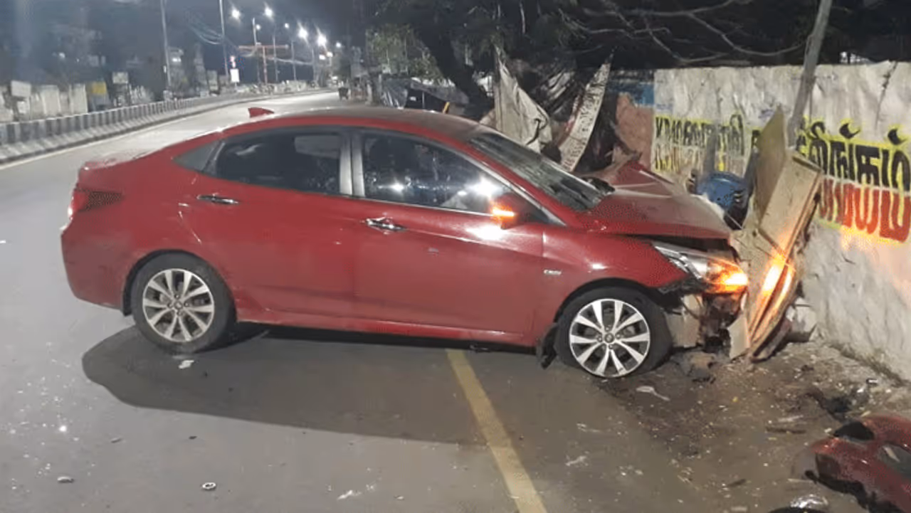 சென்னை திருவான்மியூரில் இருந்து சொகுசு கார் ஒன்று நேற்று முன்தினம் நள்ளிரவு கிழக்கு கடற்கரை சாலையில் அதிவேகமாக வந்து கொண்டிருந்தது. நீலாங்கரை அருகே வந்த போது, கார் திடீரென கட்டுப்பாட்டை இழந்து எதிரே சென்ற ஆட்டோ மீது மோதியது. இதில் ஆட்டோ தலைகீழாக உருண்டோடியது. வேகத்தின் காரணமாக கார் நிற்காமல் சாலையோரம் இருந்த ஜூஸ் மற்றும் இளநீர் கடைகளுக்குள் புகுந்து சுற்று சுவரில் மோதி நின்றது.
