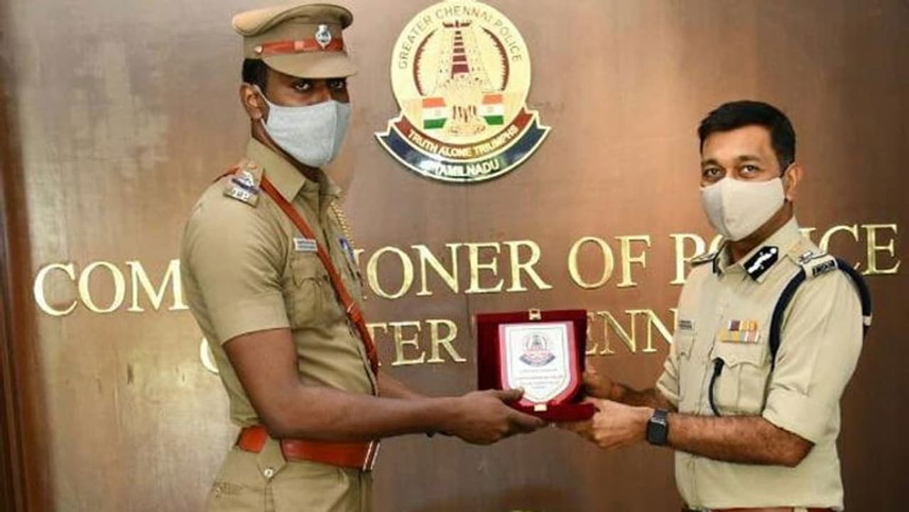 மாதவரத்தில் செல்போன் பறித்துச் சென்ற கொள்ளையர்களை இருசக்கர வாகனத்தில் துரத்திச் சென்று பிடித்த உதவி ஆய்வாளரை, காவல் ஆணையர் நேரில் அழைத்து பாராட்டு தெரிவித்துள்ளார்.