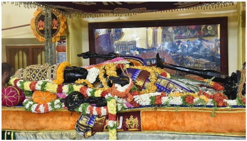 கடந்த 27 நாட்களில் 37 லட்சத்துக்கும் மேற்பட்ட அத்திவரதரை தரிசனம் செய்துள்ளனர். தினமும் ஒரு வண்ணத்தில் பட்டு உடுத்தி அருள்பாலிக்கும் அத்திவரதர், நேற்று சாம்பல் நிற பட்டு உடுத்தி, பல வண்ண மலர்களால் அலங்கரிக்கப்பட்டு பக்தர்களுக்கு காட்சியளித்தார். அத்திவரதர் வீற்றிருக்கும் வசந்த மண்டபம் வண்ணமலர்களால் அலங்கரிக்கப்பட்டுள்ளது.