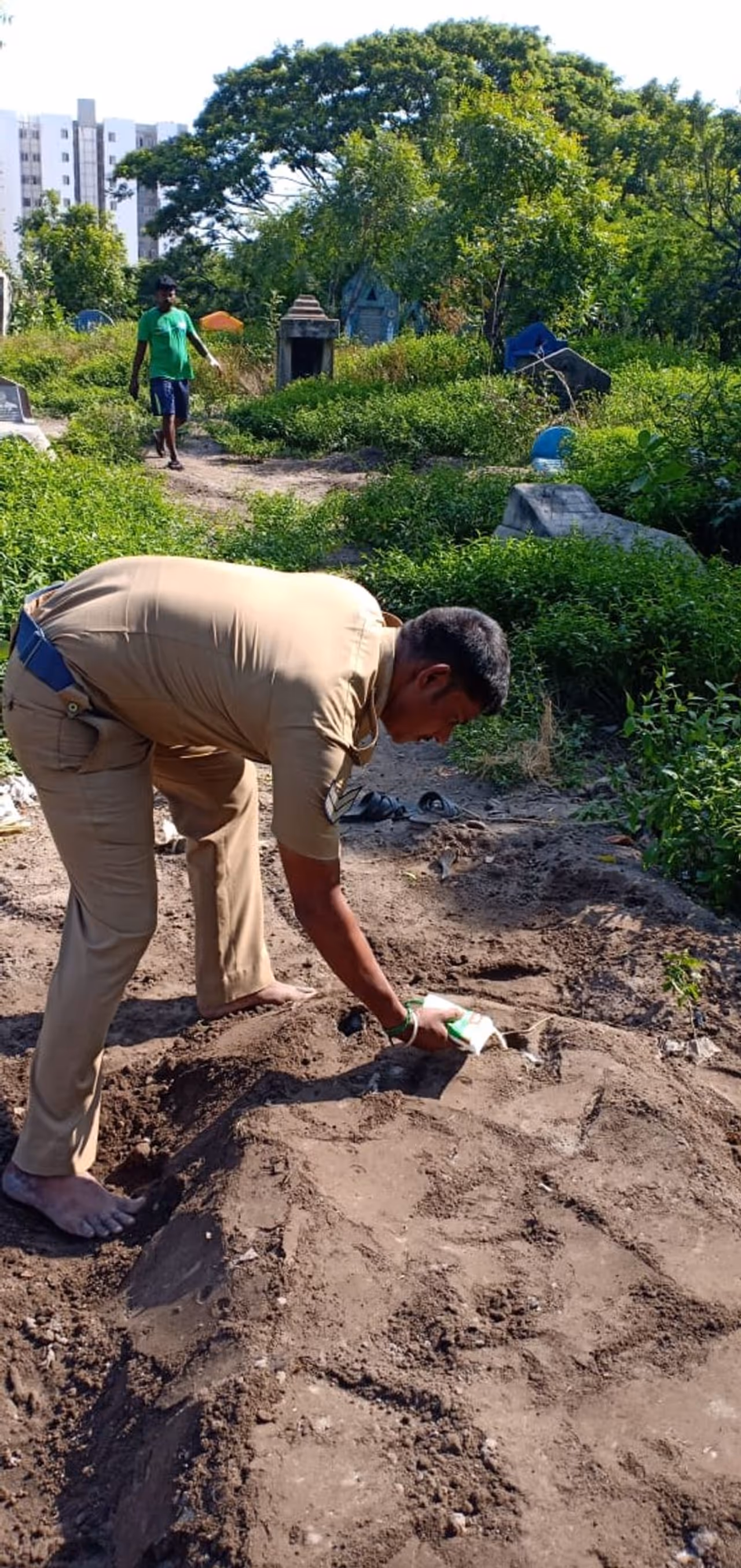 சென்னை அருகே ஆதரவற்ற நிலையில் உயிரிழந்த இரண்டு பேருக்கு காவலர் ஒருவர் இறுதி மரியாதையை செய்துள்ளார்.