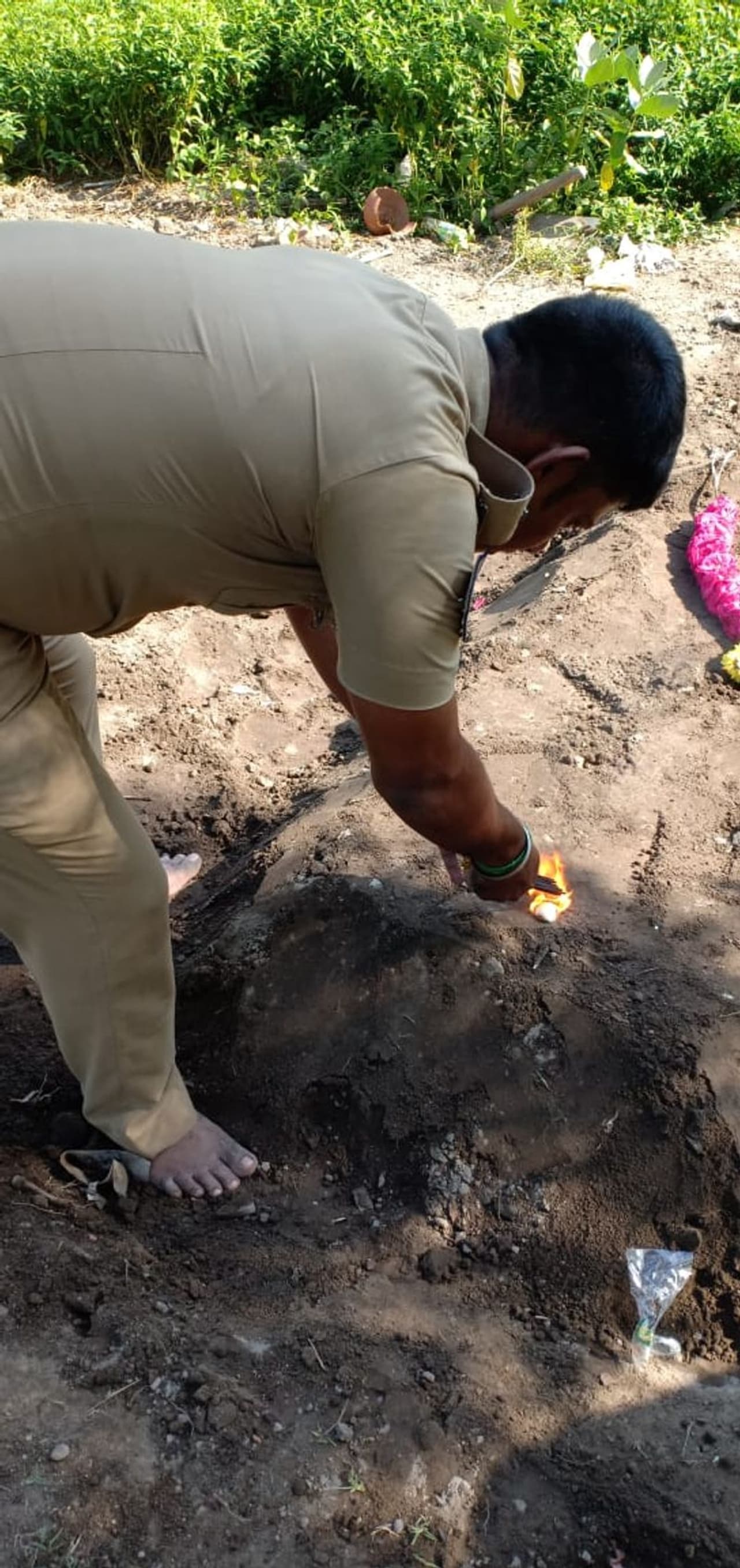 சற்றும் யோசிக்காத சுரேஷ் தனது சொந்த செலவில் பிணங்களை அடக்கம் செய்ய முடிவெடுத்தார். அதன்படி இரண்டு உடலைகளையும் மருத்துவமனையின் முறையான அனுமதியுடன் பெற்றுக்கொண்டார். அவை துணியால் சுற்றி ஆம்புலன்ஸ் மூலமாக சுடுகாட்டிற்கு கொண்டு செல்லப்பட்டது. அங்கு உடல்களை புதைத்த சுரேஷ், சமாதிக்கு மாலை அணிவித்து சூடனும் பத்தியும் ஏற்றி வைத்தார். பின்னர் உறவினர்கள் செய்வது போல பால் ஊற்றி இறுதி மரியாதை செலுத்தினார்.