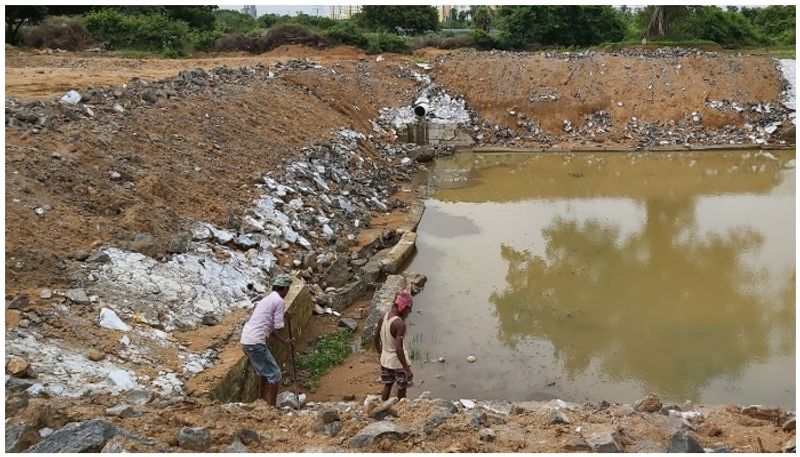 இந்நிலையில் கடந்த 4 நாட்களுக்கு முன்பு பெய்த லேசான மழைக்கே, புதிதாக கட்டியக் குளத்தில் இருந்த கற்கள் சரிந்து விழுந்தன. இதுகுறித்து தினகரன் நாளிதழில் படத்துடன் செய்தி வெளியானது.