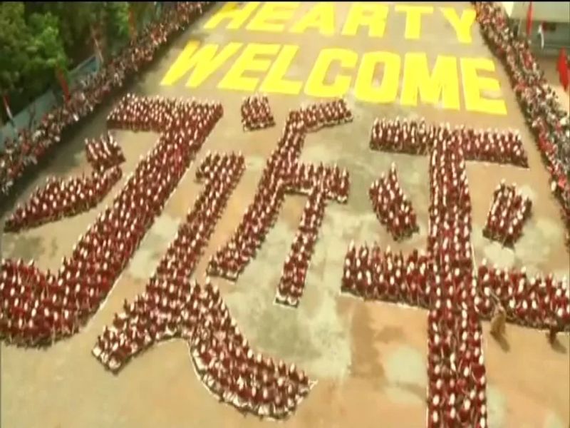 இந்த நிலையில் சீன அதிபரை வரவேற்கும் விதமாக சென்னையில் இருக்கும் ஒரு பள்ளியில் சீனாவின் தாய்மொழியில் அவரது பெயர் வடிவில் மாணவர்கள் ஒன்றாக அமர்ந்து சிறப்பு நிகழ்ச்சி ஏற்பாடு செய்யப்பட்டிருந்தது.