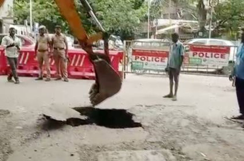 சென்னை சென்ட்ரல் ரயில் நிலையம் அருகே நேற்று சாலையில் திடீரென்று பள்ளம் ஏற்பட்டதால் பரபரப்பு ஏற்பட்டது.
