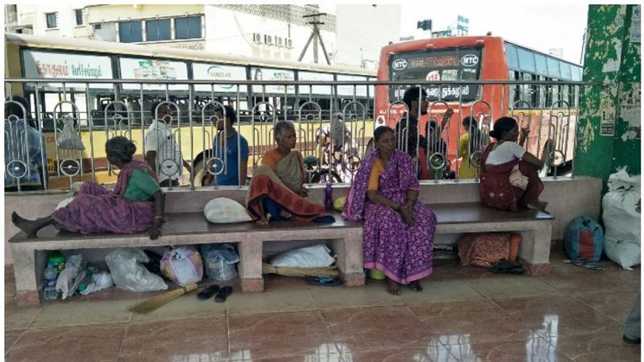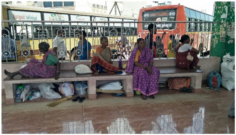 தற்போது இந்த பஸ் நிலையத்தில் ஏராளமான முதியோர்கள் தங்களது துணி, மணி, துடைப்பம், பாத்திரங்கள் உள்பட பல்வேறு பொருட்களுடன் தஞ்சமடைந்துள்ளனர். அங்குள்ள அலமாரிகளிலும், பயணிகள் உட்காரும் இருக்கையின் கீழ் பகுதியிலும் வைத்து மாதக்கணக்கில் தங்கியுள்ளனர்.