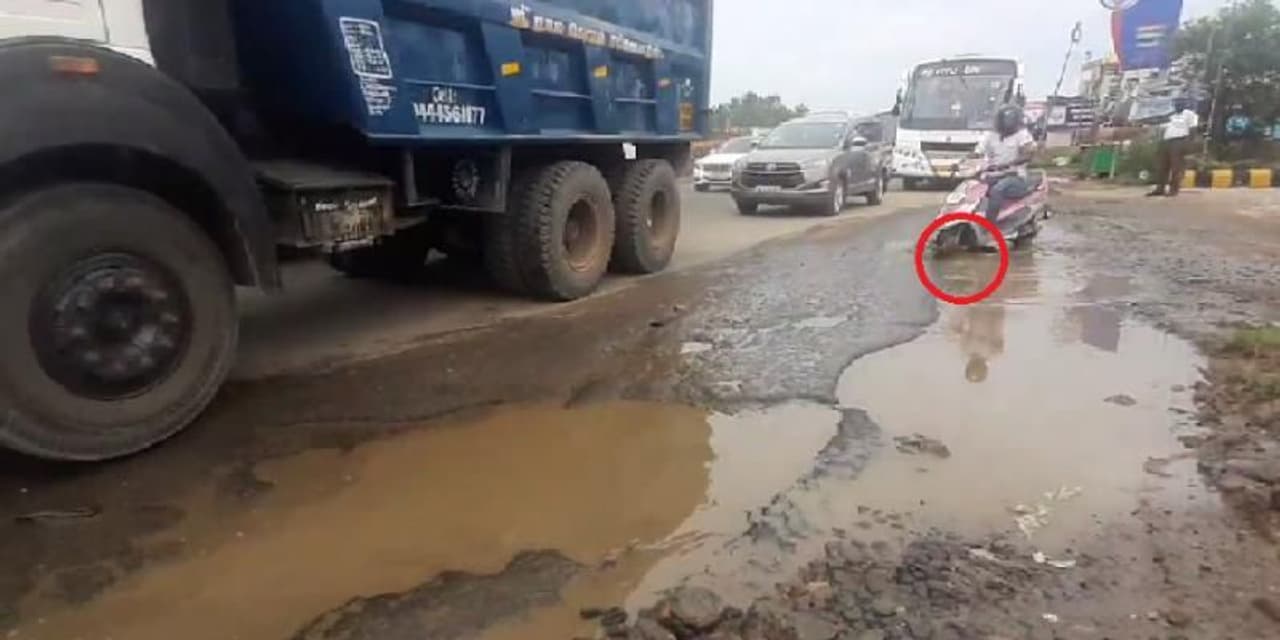 நேற்று ராமதாசும் அவரது மனைவியும் இருசக்கர வாகனத்தில் பூந்தமல்லி-பெங்களூரு தேசிய நெடுஞ்சாலையில் சென்று கொண்டிருந்தனர். நசரத்பேட்டை அருகே சாலையில் பள்ளம் இருந்திருக்கிறது. மழை பெய்ததால், அந்த பள்ளம் நீரால் நிரப்பி, வெளியே தெரியாத வண்ணம் இருந்துள்ளது. ராமதாசும் அவரது மனைவியும் வந்த வாகனம் எதிர்பாராத விதமாக அந்த பள்ளத்தில் இறங்கியுள்ளது. அதில் நிலைகுலைந்து இருவரும் கீழே விழுந்துள்ளனர்.
