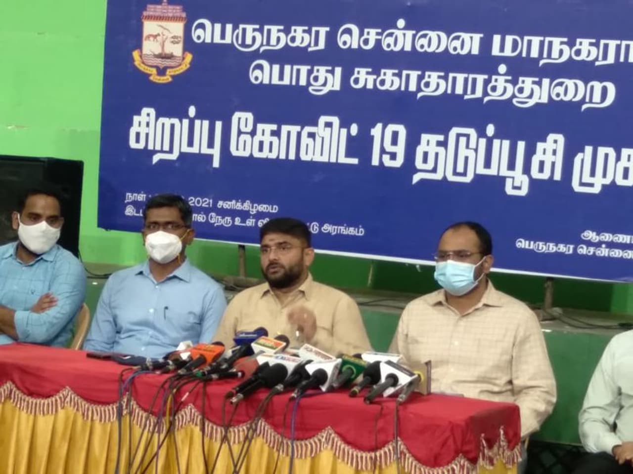 தனிமைப்படுத்துதல், வீட்டுக்கு வீடு சர்வே ஆகியவற்றை இன்னும் தீவிரப்படுத்த உள்ளோம். மறுபடியும் மக்கள் தடுப்பூசியை வேகமாக எடுத்துக்கொள்கின்றனர். கொரோனா தடுப்பூசி 100% பாதுகாப்பானது. 13-14 லட்சம் பேருக்கு மேல் இதுவரை தடுப்பூசி செலுத்தியிருக்கின்றனர். சென்னைக்கு மட்டும் 2 லட்சம் தடுப்பு மருந்துகளைப் பொது சுகாதாரத்துறை வழங்கியுள்ளது. தினமும் தடுப்பு மருந்துகள் வந்துகொண்டிருக்கின்றன.