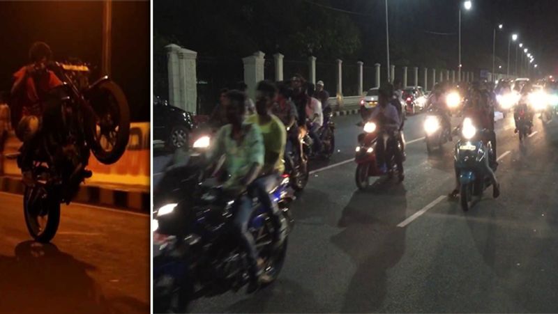 அப்போது அதிவேகமாக பைக்கில் சென்று ரேஸில் ஈடுபட்ட 158 இளைஞர்களும் அவர்களின் இருசக்கர வாகனமும் பறிமுதல் செய்யப்பட்டன. அதில் 126 மீது இருசக்கர வாகனத்தில் தாறுமாறாக வந்து பொதுமக்களின் உயிருக்கு அச்சத்தை ஏற்படுத்தியதாக வழக்கு பதியப்பட்டுள்ளது. மற்ற 32 பேர் மீதும் மோட்டார் வாகனச் சட்டத்தின் கீழ் வழக்கு பதியப்பட்டு ஜாமினில் விடுவிக்கப்பட்டுள்ளனர். இவர்களுள் முகமூடி அணிந்து இளம்பெண் ஒருவரும் கைதாகி இருக்கிறார். வழக்கு பதியப்பட்டிருக்கும் பெரும்பாலானோர் பள்ளி,கல்லூரி மாணவர்களாக உள்ளனர்.