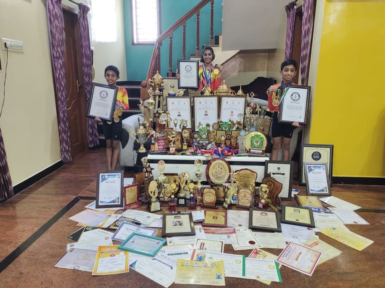 ஒரே குடும்பத்தை சேர்ந்த மூன்று பேரும் மாநில, தேசிய, சர்வதேச போட்டிகளில் விருதுகளை வாங்கி, வீடு முழுவதும் கோப்பைகள், விருதுகள், சான்றிதழ்கள் என குவித்து வருவதை பலரும் பாராட்டி வருகின்றனர். பல்வேறு சாதனைகளுக்காக மூன்று பேருக்கும் அண்மையில் மதுரை முத்தமிழ் சங்கத்தின் இளம் சாதனையாளர் விருது வழங்கி கௌரவிக்கப்பட்டுள்ளது குறிப்பிடதக்கது.