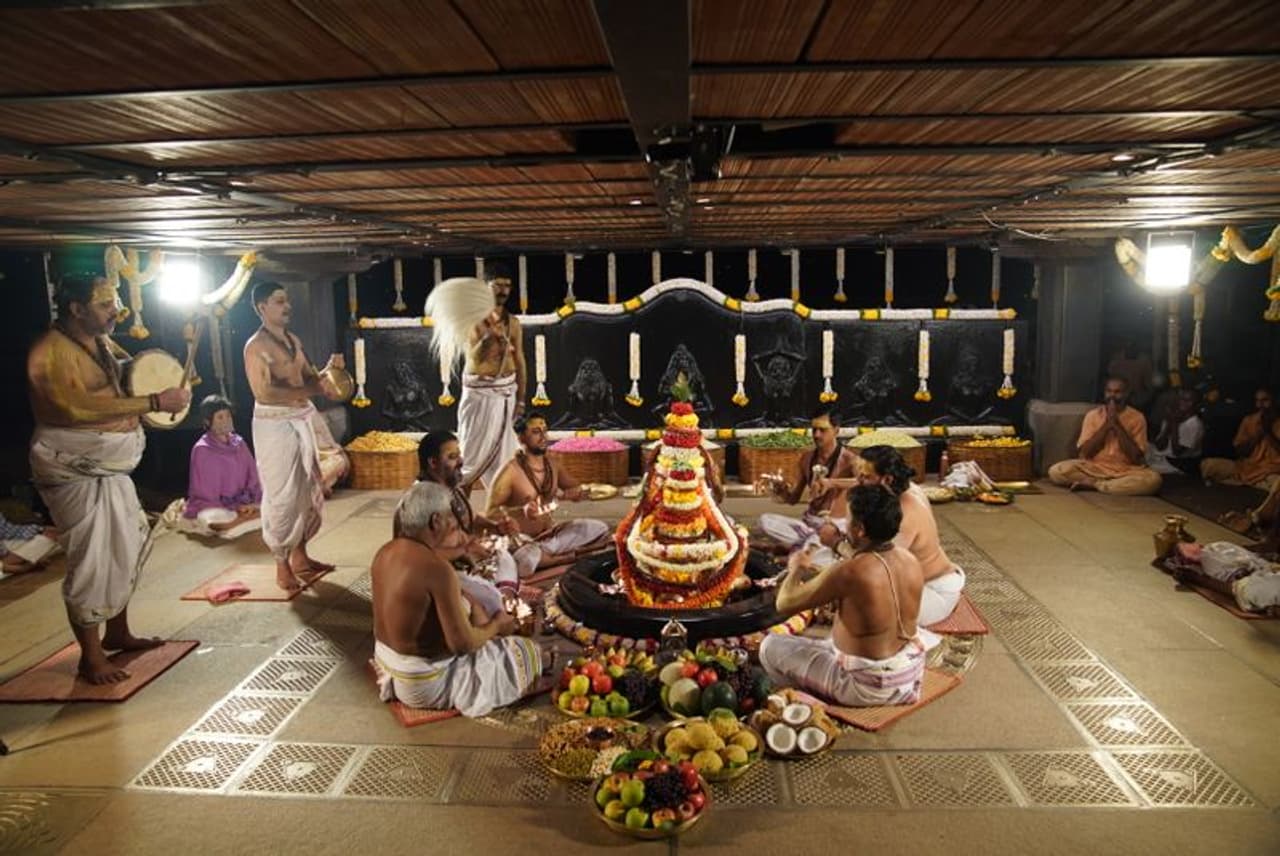 ஆதியோகி முன்பு பிரதிஷ்டை செய்யப்பட்டுள்ள யோகேஸ்வர லிங்கத்திற்கு அகஸ்தியர் ஜெயந்தி தினமான நேற்று (டிச 23) சப்தரிஷி ஆரத்தி சிறப்பாக நடைபெற்றது.