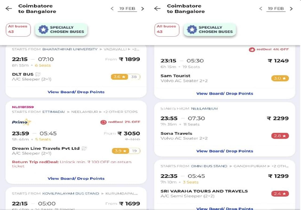 கோவையிலிருந்து ஆம்னி பேருந்துகள் தினம் தோறும் வெளி மாவட்டங்கள் மற்றும் மாநிலங்களுக்கு இயக்கப்பட்டு வருகிறது. குறிப்பாக சென்னை, பெங்களூர் போன்ற பகுதிகளுக்கு தினசரி ஆம்னி பேருந்துந்துகள் இயக்கப்படுவது வழக்கம். இந்த நிலையில் தான் கோவையில் இருந்து பெங்களூருக்கு செல்லும் ஆம்னி பேருந்துகள் டிக்கெட் விலை 1500 ரூபாயில் இருந்து 3050 வரை கட்டணம் உயர்த்தப்பட்டுள்ளது. இது பயணிகளை அதிர்ச்சியில் ஆழ்த்தியுள்ளது.