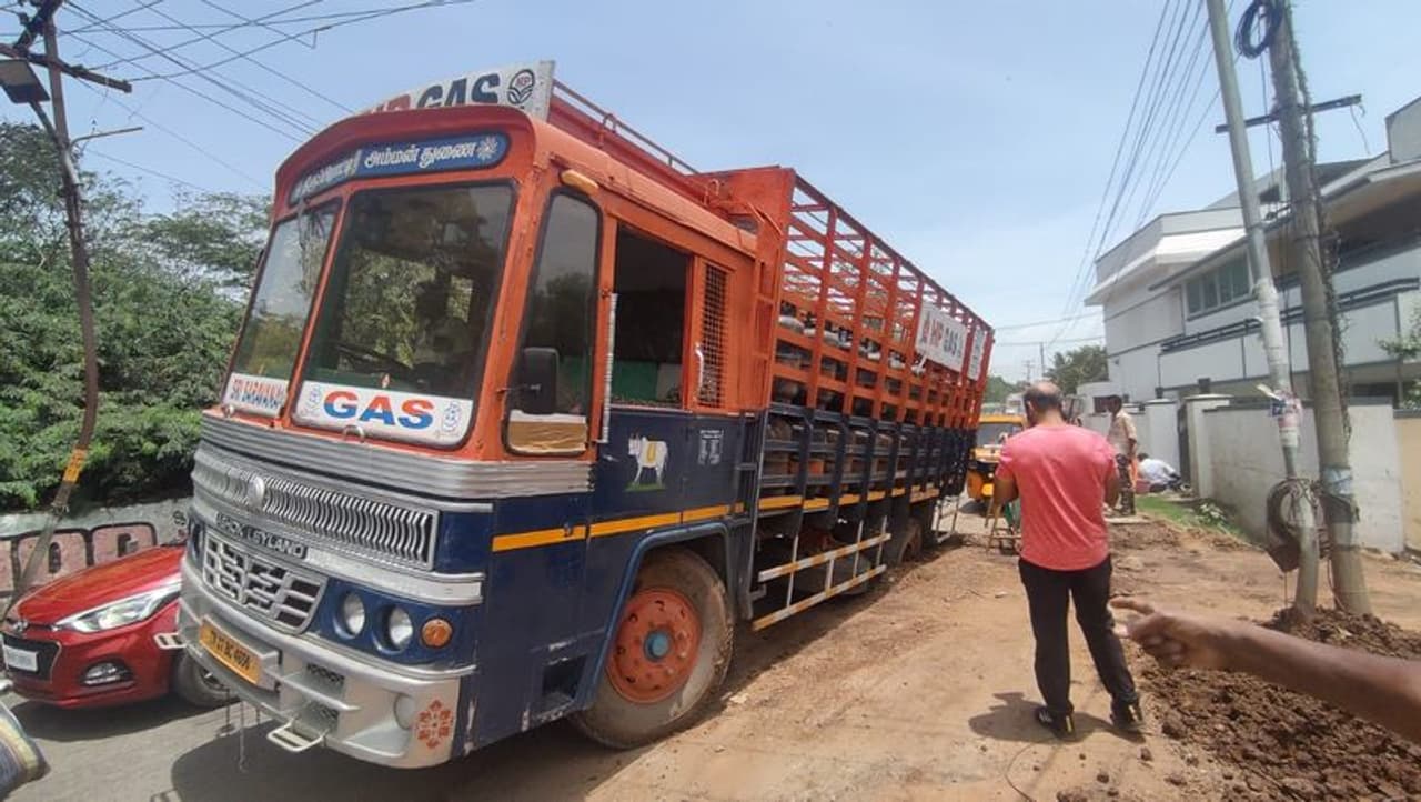இதை அடுத்து பேருந்தில் இருந்த பயணிகள் வேறு பேருந்துக்கு மாற்றப்பட்டனர். பின்னர் நீண்ட போராட்டத்திற்கு பிறகு பொக்லைன் இயந்திரம் மூலம் பேருந்து மீட்கப்பட்டது. அதேபோல் போத்தனூர் பகுதியிலேயே நஞ்சுண்டாபுரம் சாலையில் குடிநீர் இணைப்புக்காக தோண்டப்பட்ட குழி சரியாக மூடப்படாததால் கேஸ் சிலிண்டர் லாரி ஒன்று சிக்கிக்கொண்டது. இதனால் குறுகலான அந்த சாலையில் கடும் போக்குவரத்து நெரிசல் ஏற்பட்டது.