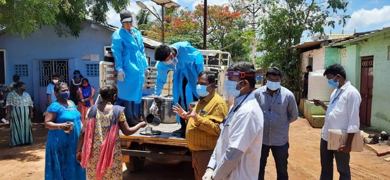 4. 2,500 முன் களப்பணியாளர்களுக்கு முக கவசம் மற்றும் சானிடைசர்கள் வழங்கப்படுகிறது.