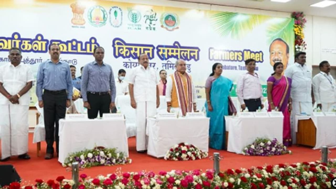 கோவை தமிழ்நாடு வேளாண்மை பல்கலைகழக வளாகத்தில் மத்திய தென்னை வளர்ச்சி வாரியம் சார்பில் உழவர் கூட்டம் நடத்தப்படுகிறது. இதில் மத்திய வேளாண் துறை அமைச்சர் நரேந்திர சிங் தோமர், தமிழக வேளாண் துறை அமைச்சர் எம்.ஆர்.கே பன்னீர் செல்வம், பொள்ளாச்சி எம்.எல்.ஏ பொள்ளாச்சி ஜெயராமன், கோவை தெற்கு தொகுதி எம்.எல்.ஏ வானதி சீனிவாசன், கோவை வடக்கு தொகுதி எம்.எல்.ஏ அம்மன் அர்ஜூனன், வால்பாறை எம்.எல்.ஏ அமல் கந்தசாமி ஆகியோர் கலந்து கொண்டனர்.