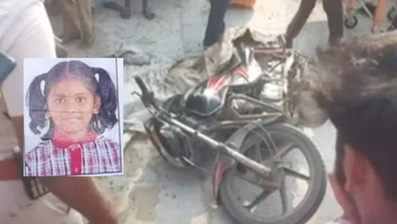கடலூர் மாவட்டம் சிதம்பரம் அருகே ஜம்புலிங்கம் என்பவர் 3ம் வகுப்பு படித்து வரும் தனது மகள் ஜனுஷிகாவை பள்ளியில் விடுவதற்காக இருசக்கர வாகனத்தில் அழைத்து சென்றுள்ளார்.