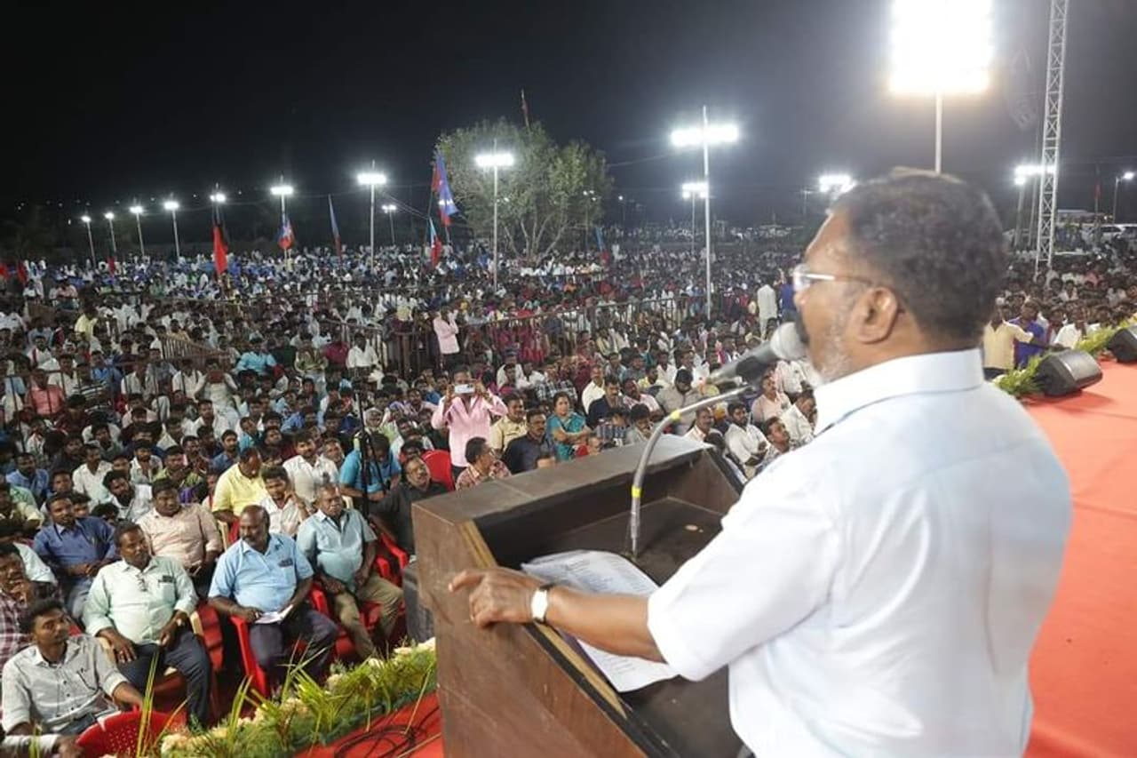 விடுதலை சிறுத்தைகள் கட்சி தலைவர் தொல்.திருமாவளவன் சிதம்பரம் நாடாளுமன்றத் தொகுதியில் போட்டியிடும் நிலையில், தொகுதிக்கு உட்ட கடலூரில் திமுக தலைமையிலான இந்தியக் கூட்டணிக் கட்சியினரின் செயல்வீரர்கள் கூட்டம் நடைபெற்றது. இக்கூட்டத்தில் வேளாண்துறை அமைச்சர் எம்.ஆர்.கே.பன்னீர்செல்வம், போக்குவரத்துத்துறை அமைச்சர் எஸ்.எஸ்.சிவசங்கர், தொழிலாளர் நலத்துறை அமைச்சர் சி.வி.கணேசன், சட்டமன்ற உறுப்பினர்கள் சிந்தனை செல்வன், தமிழக வாழ்வுரிமைக் கட்சி வேல்முருகன், ஐய்யபன், ராதாகிருஷ்ணன், நாடாளுமன்ற உறுப்பினர் விஷ்ணு பிரசாத், காங்கிரஸ் முன்னாள் தலைவர் கே.எஸ்.அழகிரி உள்ளிட்டோர் பங்கேற்றனர்.
