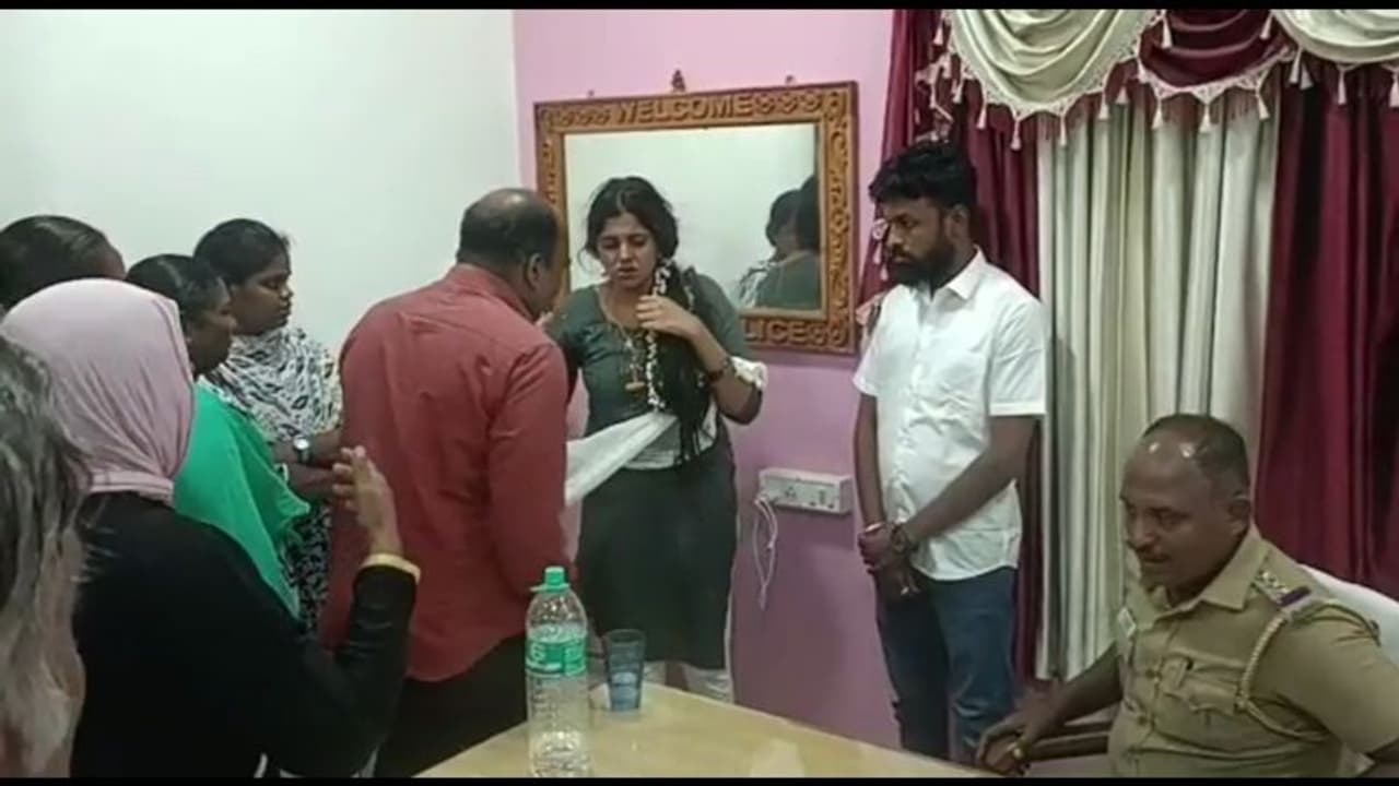 கடலூர் மாவட்டம், பண்ருட்டி பனங்காட்டு தெருவைச் சேர்ந்தவர் விஜயபாஸ்கர் (வயது 27). ஓட்டுநராக பணியாற்றி வருகிறார். இவரும் திருவதிகை பகுதியைச் சேர்ந்த ஆயிஷா பேகம் (21) ஆகிய இருவரும் காதலித்து வந்த நிலையில் கடந்த இரண்டு தினங்களுக்கு முன்பு காதல் திருமணம் செய்து கொண்டனர். இவர்கள் இருவரும் வெவ்வேறு சமூகத்தைச் சேர்ந்தவர்கள் என்பதால் இவர்களின் கலப்புத் திருமணத்திற்கு பெண்ணின் பெற்றோர் மற்றும் உறவினர்கள் எதிர்ப்பு தெரிவித்து பெண்ணை பிரித்து வைக்க கோரி பண்ருட்டி காவல் துறையினரிடம் புகார் கொடுத்தனர்.