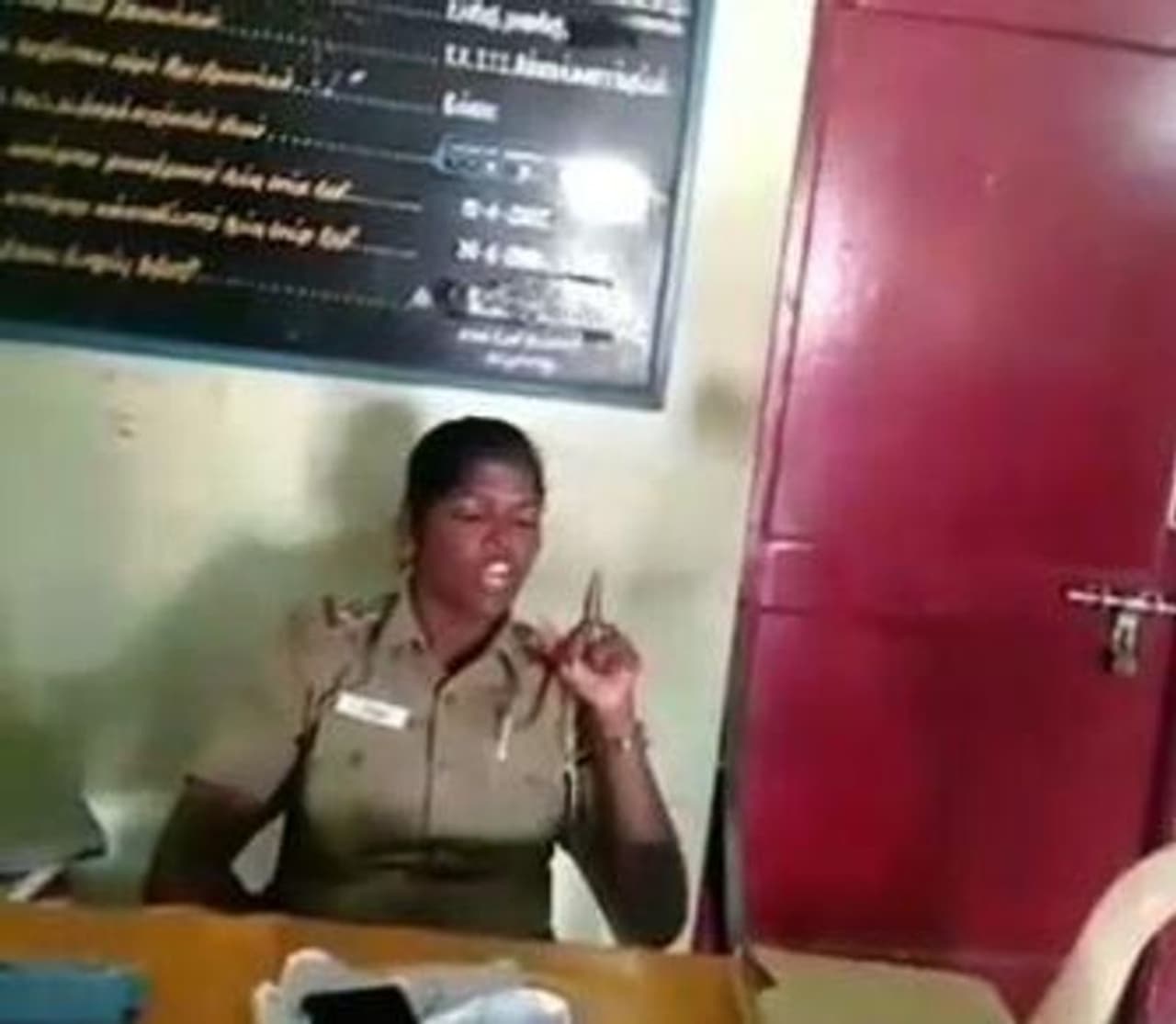 ' நீ யாரு? உனக்கும் இதுக்கும் என்ன சம்பந்தம். இது என் காவல்நிலையம். வெளியே போ' என்று கத்தியுள்ளார். அதற்கு அவர்கள், 'இது மக்களுக்கான இடம் தானே' என்று கூறி இருக்கின்றனர். அதில் மேலும் ஆத்திரமடைந்த உதவி ஆய்வாளர், 'நீ கலெக்டர்கிட்ட போய் சொல்லு. இல்ல வேற யாருகிட்ட வேணும்னாலும் சொல்லு. எனக்கு எந்த பயம் இல்லை என்று அதட்டும் தொனியில் பேசியிருக்கிறார்.