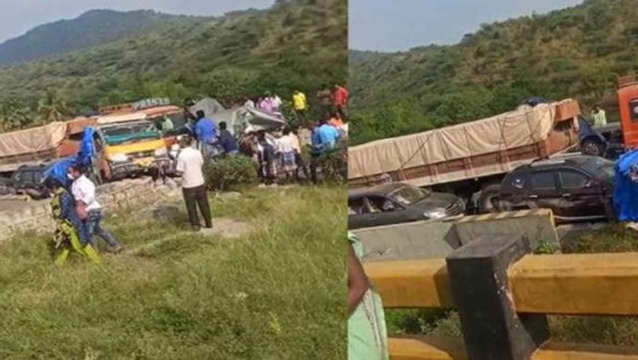இதையடுத்து, விபத்தில் சிக்கிய கார்களை கிரேன் மூலம் மீட்கும் நடவடிக்கையில் போலீசார் ஈடுபட்டனர். இந்த விபத்தால், சாலையின் இருபுறமும் 5 கிமீ தொலைவுக்கு வாகனங்கள் அணிவகுத்து நின்றன. இதன் காரணமாக, 3 மணி நேரத்திற்கு மேலாக போக்குவரத்து பாதிக்கப்பட்டது. சினிமாவை மிஞ்சும் வகையில் இந்த விபத்து ஏற்பட்டிருக்கிறது. விபத்து ஏற்படுத்திவிட்டு வனப்பகுதியில் மறைந்திருந்த ஓட்டுநர் அதிரடியாக கைது செய்யப்பட்டுள்ளார். மேலும், விபத்து தொடர்பான சிசிடிவி காட்சிகள் வெளியாகி நெஞ்சை பதற வைக்கிறது.