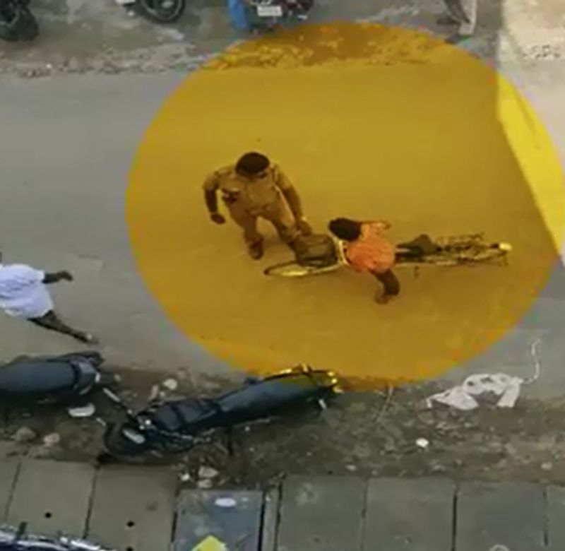 நீண்ட நேரம் காத்திருப்புக்கு பின், மாணவனையும் சைக்கிளையும் விடுவித்திருக்கிறார். இவை அனைத்தையும் ஒருவர் தனது மொபைல் போனில் காணொளியாக பதிவு செய்திருந்தார். அது தற்போது வைரலாக பரவி வருகிறது.