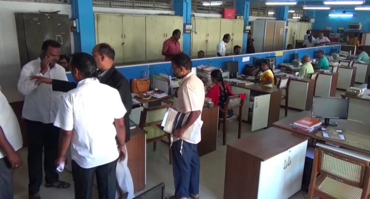 திண்டுக்கல் மாவட்ட ஆட்சியர் அலுவலகத்திற்கு இடம் வழங்கிய விவசாயிகளுக்கு உரிய இழப்பீடுத் தொகை வழங்காததால் மாவட்ட ஆட்சியர் அலுவலகத்தில் மேற்கொள்ளப்பட்ட ஜப்தி நடவடிக்கையால் பரபரப்பு.