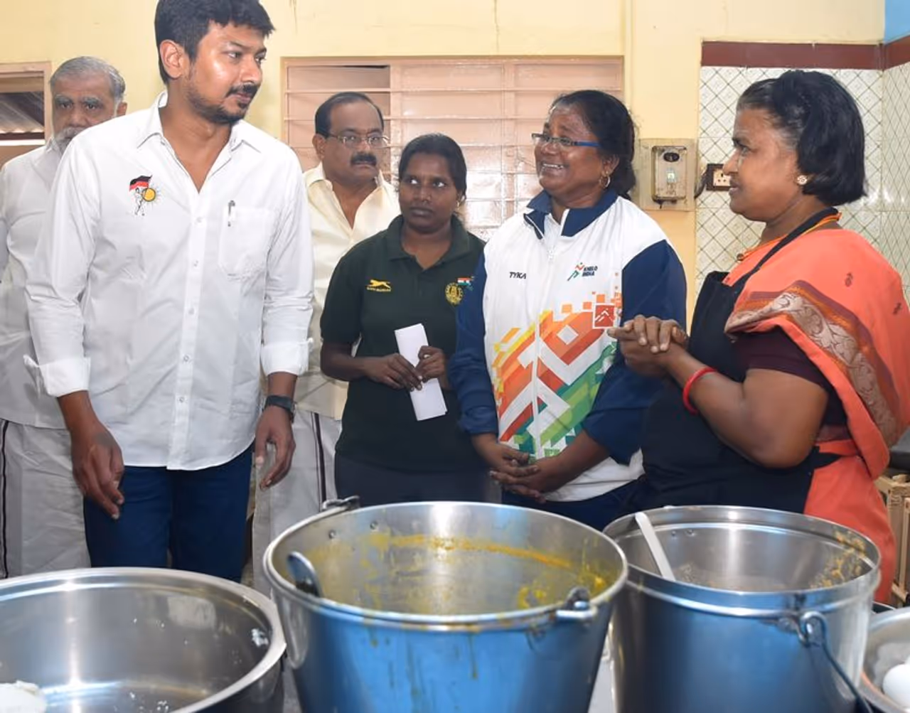 திண்டுக்கல் மேற்கு ரத வீதியில் உள்ள திண்டுக்கல் மாநகராட்சி தொடக்கப்பள்ளியில் முதலமைச்சரின் காலை சிற்றுண்டி வழங்கும் திட்டத்தின் செயல்பாடுகளை அமைச்சர் உதயநிதி ஸ்டாலின் ஆய்வு மேற்கொண்டார். அப்போது பள்ளி குழந்தைகள் பாடத்திட்டத்தில் உள்ள பாடலை பாடினர். பள்ளியில் அமைச்சர் குழந்தைகளுக்கு காலை உணவு பரிமாறி, உணவின் தரம் குறித்து கேட்டறிந்தார். பள்ளி வளாகம் துாய்மையாக பராமரிக்கப்படுகிறதா என்பதை பார்வையிட்டு, சுகாதார வளாகத்தையும் பார்வையிட்டார்.