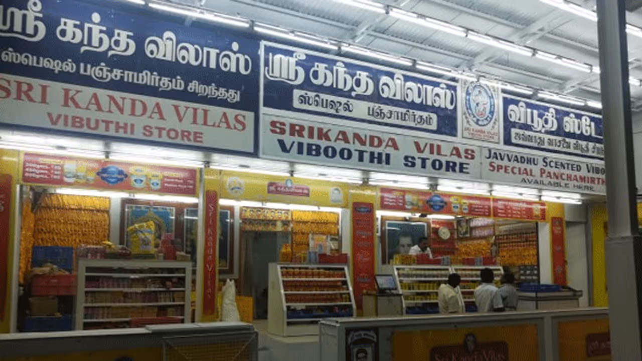 இந்நிலையில், பழனி மலை அடிவாரத்தில் கடந்த பல ஆண்டுகளாக பாரம்பரியமிக்க சித்தநாதன், கந்தவிலாஸ் இந்த இரு நிறுவனங்களும் பஞ்சாமிர்த விற்பனையில் ஈடுபட்டு வருகின்றனர். இந்த நிறுவனங்கள் பஞ்சாமிர்தம் விற்பனை அல்லாமல் இந்த மலை அடிவாரத்தில் தங்கு விடுதிகள், ஓட்டல்கள் மற்றும் திருமண மண்டபகங்களையும் இந்த நிறுவனங்கள் நடத்தி வருகின்றனர்.