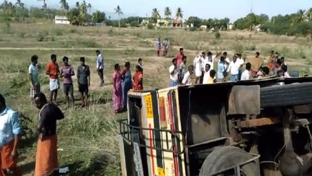 திண்டுக்கல் அருகே பள்ளி வேன் கவிழ்ந்து விபத்துக்குள்ளானது. இந்த விபத்தில் 20-க்கும் மேற்பட்ட குழந்தைகள் படுகாயமடைந்து மருத்துவமனையில் அனுமதிக்கப்பட்டுள்ளனர்.