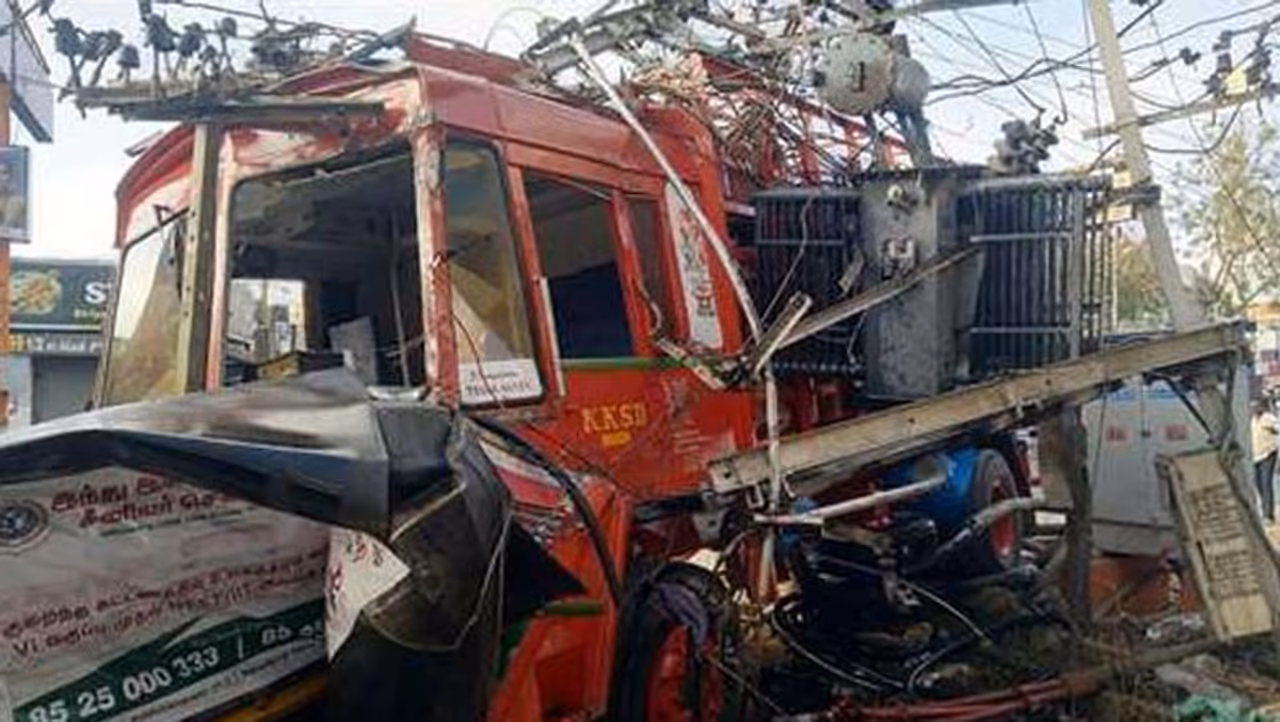 ஈரோட்டில் சமையல் ஏரிவாயு சிலிண்டர் ஏற்றி வந்த லாரி டிரான்ஸ் பார்மரில் மோதி விபத்துக்குள்ளானது. இந்த விபத்தை அடுத்து உரிய நேரத்தில் மின்சாரம் துண்டிக்கப்பட்டதால் பெரும் உயிர் சேதம் தவிர்க்கப்பட்டது.