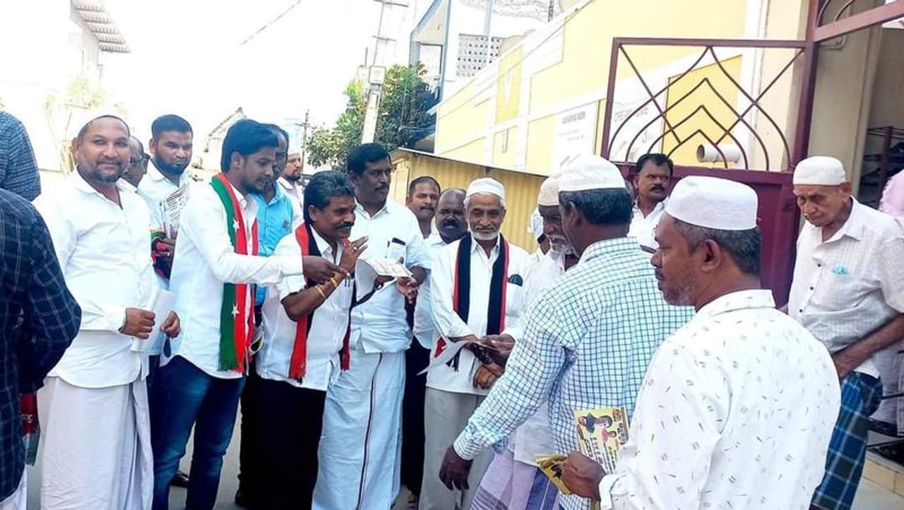 ஈரோடு கிழக்கு சட்டமன்ற தொகுதி இடைத்தேர்தலில் போட்டியிடும் மதசார்பற்ற ஜனநாயக முற்போக்கு கூட்டணியின் வேட்பாளர் ஈ.வி.கே.எஸ் இளங்கோவன் அவர்களுக்கு கை சின்னத்தில் வாக்குகள் கேட்டு தமிழக பால்வளத்துறை அமைச்சர் ஆவடி சா.மு.நாசர், பிபீ அக்ரஹாரம் பள்ளிவாசலில் வாக்கு சேகரிப்பில் ஈடுபட்டார்.