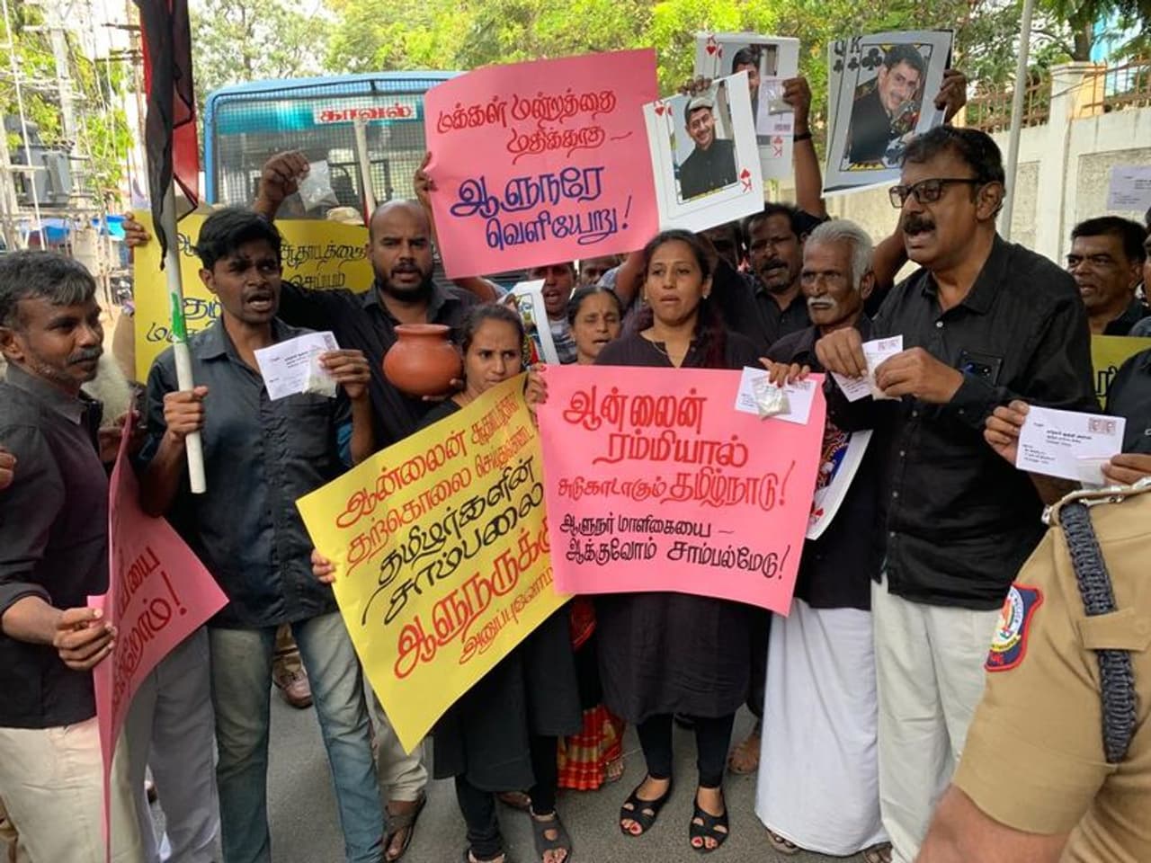 தமிழகத்தில் ஆன்லைன் சூதாட்ட விளையாட்டை தடை செய்ய கோரி பல்வேறு அரசியல் கட்சியினர், அமைப்பினர் போராட்டம் நடத்தி வருகின்றனர். ஆன்லைன் சூதாட்டம் காரணமாக தமிழகத்தில் பலரும் தங்களது பணத்தை இழந்துள்ளனர். அதில் சிலர் தங்கள் உயிரை மாய்த்துக் கொண்டுள்ளனர்.