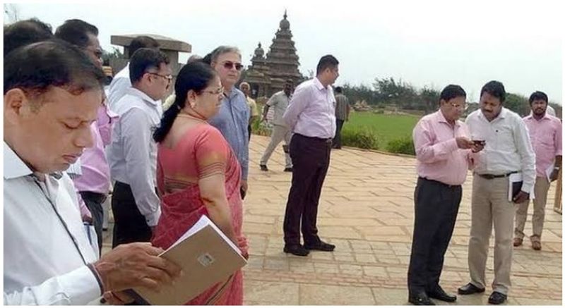 மத்திய, மாநில அரசுகளின் தீவிர கண்காணிப்பில் மாமல்லபுரம் கொண்டு வரப்பட்டுள்ளது. பாதுகாப்பு ஏற்பாடுகளும் தீவிரமாக மேற்கொள்ளப்பட்டுள்ளன. இந்நிலையில் இன்று மாமல்லபுரம் வருகைபுரிந்த மத்திய பாதுகாப்புதுறை அதிகாரிகள் ஒவ்வொரு பகுதியாகச் சென்று ஆய்வு மேற்கொண்டனர்.