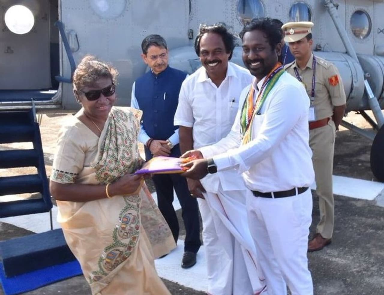குடியரசுத் தலைவர் திரௌபதி முர்மு 3 நாள் பயணமாக தென் மாநிலங்களுக்கு சுற்றுப் பயணம் மேற்கொண்டுள்ளார். சுற்றுப் பயணத்தின் 3வது நாள் பயணமாக இன்று கன்னியாகுமரி மாவட்டத்திற்கு வருவதாக தெரிவிக்கப்பட்டது. அதன்படி திருவனந்தபுரத்தில் இருந்து தனி ஹெலிகாப்டர் மூலம் கன்னியாகுமரி வந்த குடியரசு தலைவர் திரௌபதி முர்முவை ஆளுநர் ஆர்.என்.ரவி, அமைச்சர் மனோ தங்கராஜ், எம்.பி. விஜய் வசந்த் உள்ளிட்டோர் வரவேற்றனர்.