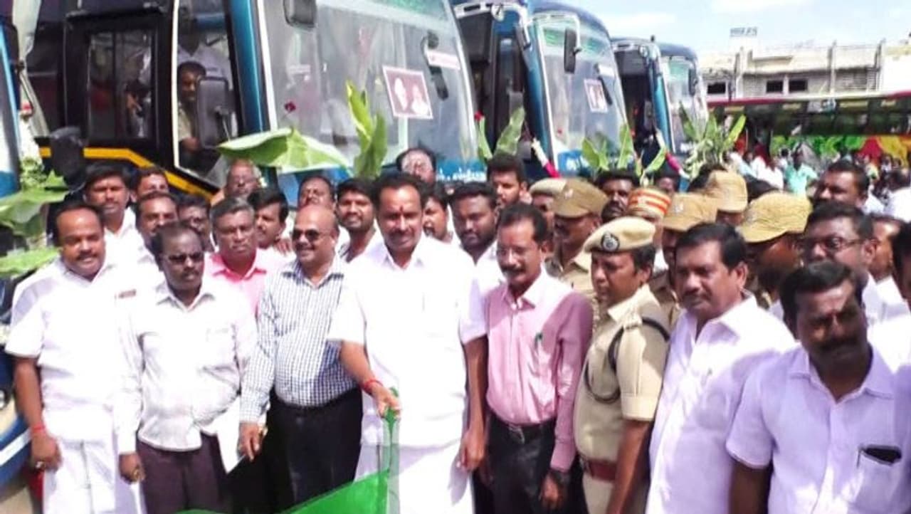 தமிழகத்தில் முதன்முறையாக 8 கோட்டங்களில் மிக குறைந்த தூரம் இயங்கும் வழித்தடங்களில் குளிர்சாதன வசதி கொண்ட புதிய பேருந்துகளை போக்குவரத்து துறை அமைச்சர் எம்.ஆர். விஜயபாஸ்கர் தொடங்கி வைத்தார்.
