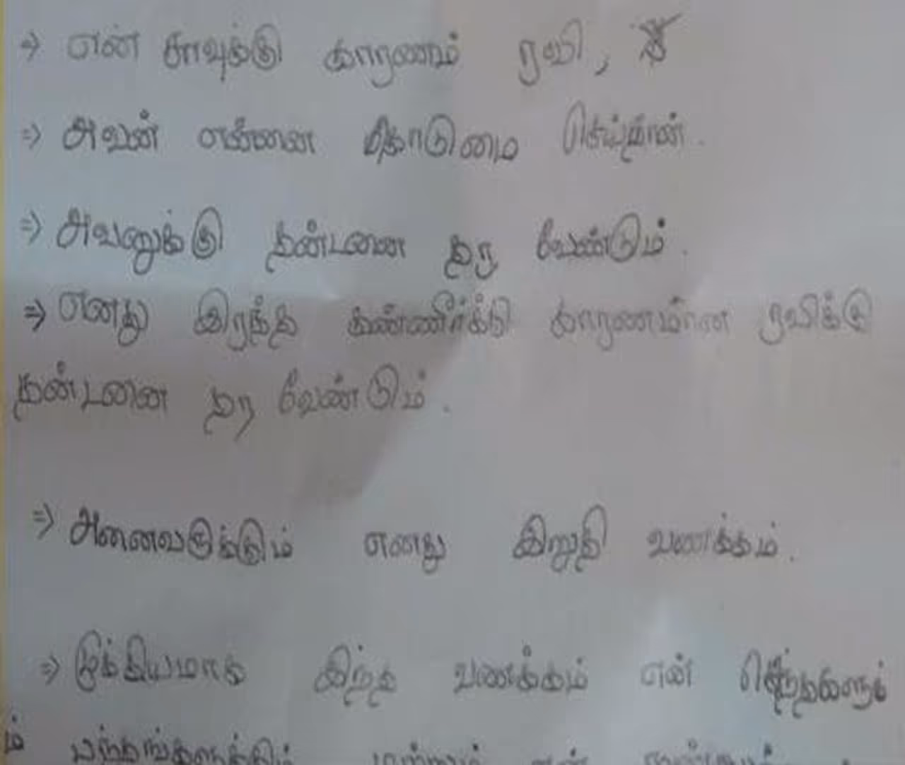 இதுதொடர்பாக வழக்கு பதிவு செய்திருந்த காவல்துறையினர் விசாரணை மேற்கொண்டு வந்தனர். பாலாஜியின் அறையை சோதனை செய்தபோது பள்ளி நோட்டு புத்தகத்தில் இறுதியாக கடிதம் ஒன்று எழுதியுள்ளார். அதில் தன் சாவிற்கு காரணம் ஆசிரியர் ரவி தான் என்று குறிப்பிட்டுள்ளார். ஆசிரியர் ரவி தன்னை கொடுமை செய்ததாகவும் தனது ரத்தக்கண்ணீருக்கு காரணமான ரவிக்கு தண்டனை பெற்று தரவேண்டும் என்றும் எழுதியுள்ளார். மேலும் தனது உறவுகளுக்கும் நண்பர்களுக்கும் இறுதி வணக்கம் என்று உருக்கத்துடன் கூறியிருக்கிறார்.
