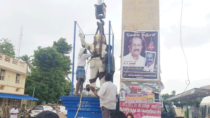 வேதாரண்யத்தில் உடைக்கப்பட்ட அம்பேத்கர் சிலைக்கு பதிலாக அரசு சார்பில் சில மணிநேரத்திற்குள்ளாகவே புதிய சிலை நிறுவப்பட்டுள்ளது.