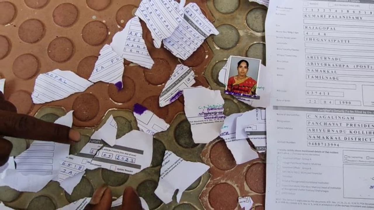கொல்லிமலை வட்டாட்சியர் அலுவலகத்தில் ஆதாரில் தனது பெயர் தவறாக உள்ளது என்பதால் அதை திருத்தவதற்கான படிவத்தை கொண்டு சென்று கொடுத்த போது கணினி பிரிவில் இருந்த அதிகாரி இது சரியில்லை என கூறி கண் முன்னால் கிழித்து தூக்கி எறிந்ததால் விவசாயி அதிர்ச்சி.