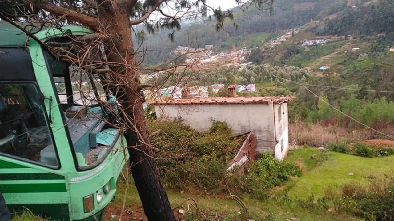 நீலகிரியில் அரசுப் பேருந்து ஓட்டுநரின் கட்டுப்பாட்டை இழந்த பேருந்து பல அடி பள்ளத்தில் தலைக்குப்புற கவிழ இருந்த பேருந்தை ஒற்றை மரம் தடுத்து 40 பயணிகளின் உயிரைக் காப்பாற்றியுள்ளது.