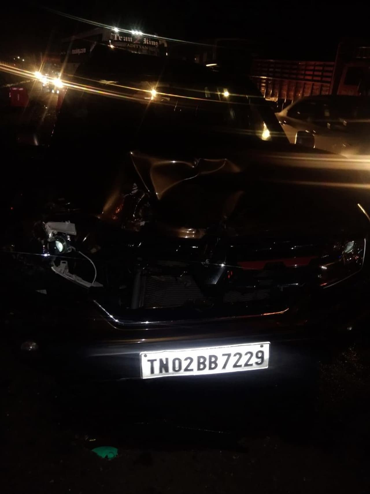 இந்த நிலையில் இன்று அதிகாலை 2 மணியளவில் கன்னியாகுமரி, நாகர்கோவிலிற்கு சுற்றுலா சென்று விட்டு மேல்மருவத்தூர் நோக்கி செல்வதற்காக வந்து கொண்டிருந்த சுற்றுலா பேருந்து சிறுவாச்சூர் மேம்பாலம் அருகே வந்த போது ஓட்டுநர் தூக்க கலகத்தில் முன் சென்ற கார் மீது மோதி மேம்பாலம் மீது ஏறி பேருந்து கவிழ்ந்தது.