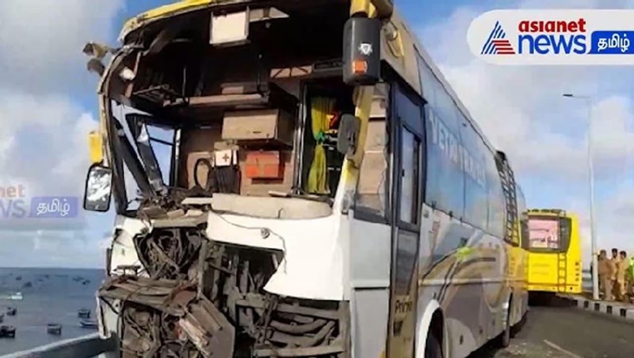 பாம்பன் பாலத்தில் அரசு பேருந்தும் தனியார் ஆம்னி பேருந்து நேருக்கு நேர் மோதி விபத்துக்குள்ளானது. இந்த விபத்தில் ஆம்னி பேருந்து பாலத்தின் தடுப்பு மீது மோதி நின்றதால் பெரும் உயிர் சேதம் தவிர்க்கப்பட்டது.