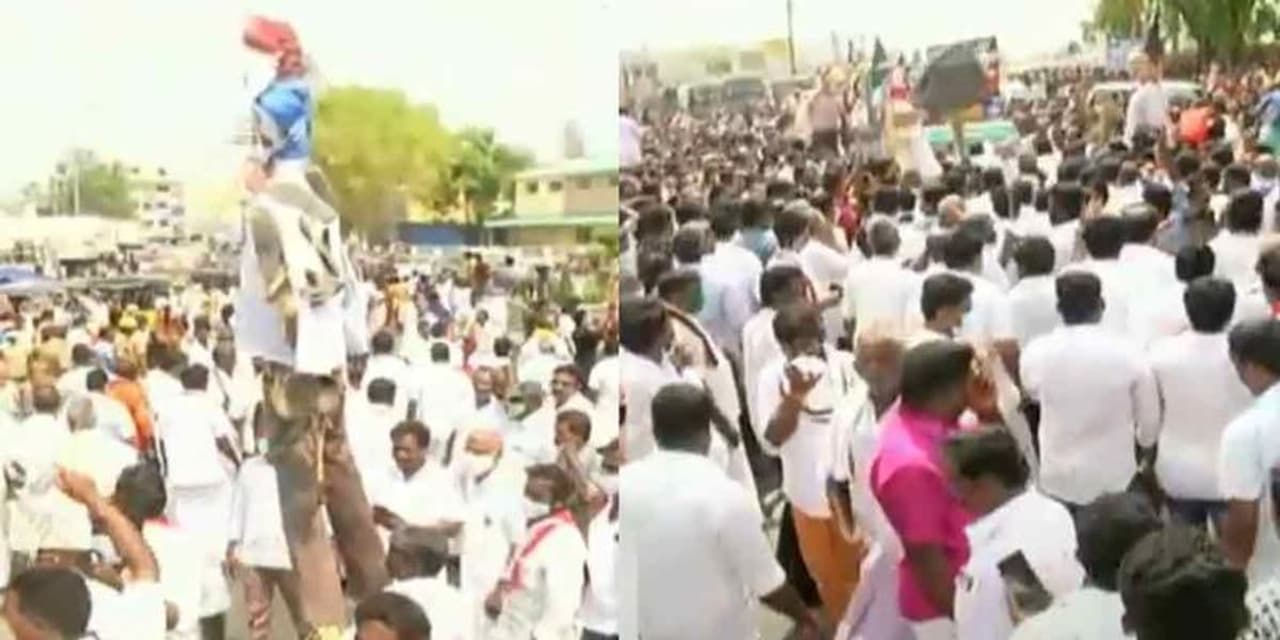 அதேபோல் முதலமைச்சரின் சொந்த ஊரும், சட்டமன்ற தொகுதியுமான எடப்பாடியில் அதிமுகவைச் சேர்ந்த பெண்கள், ஆண்கள் என 2 ஆயிரத்திற்கும் மேற்பட்டோர் கையில் கருப்புக்கொடியுடன் பிரம்மாண்ட பேரணி நடத்தினர்.