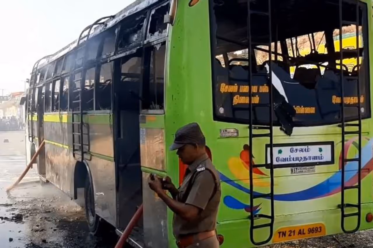 பேருந்து கிளம்பி செல்லத்தொடங்கியதும் திடீரென என்ஜின் பகுதியில் இருந்து புகை வந்துள்ளது. புகை அதிகளவில் வெளியேறுவதை பார்த்து அதிர்ச்சியடைந்த ஓட்டுநர் கார்த்தி, உடனடியாக பேருந்தை சாலையோரமாக நிறுத்தினார். அதைத்தொடர்ந்து பேருந்தில் இருந்த பயணிகள் அனைவருக்கும் எச்சரிக்கை கொடுக்கப்பட்டு அவசரமாக வெளியேற்றப்பட்டனர். பயணிகள் வெளியேறிய சில விநாடிகளில் பேருந்து முழுவதும் தீ பிடித்து எரிய தொடங்கியது. மளமளவென பற்றிய தீ, பேருந்து முழுவதும் கொழுந்து விட்டு எரிந்தது.