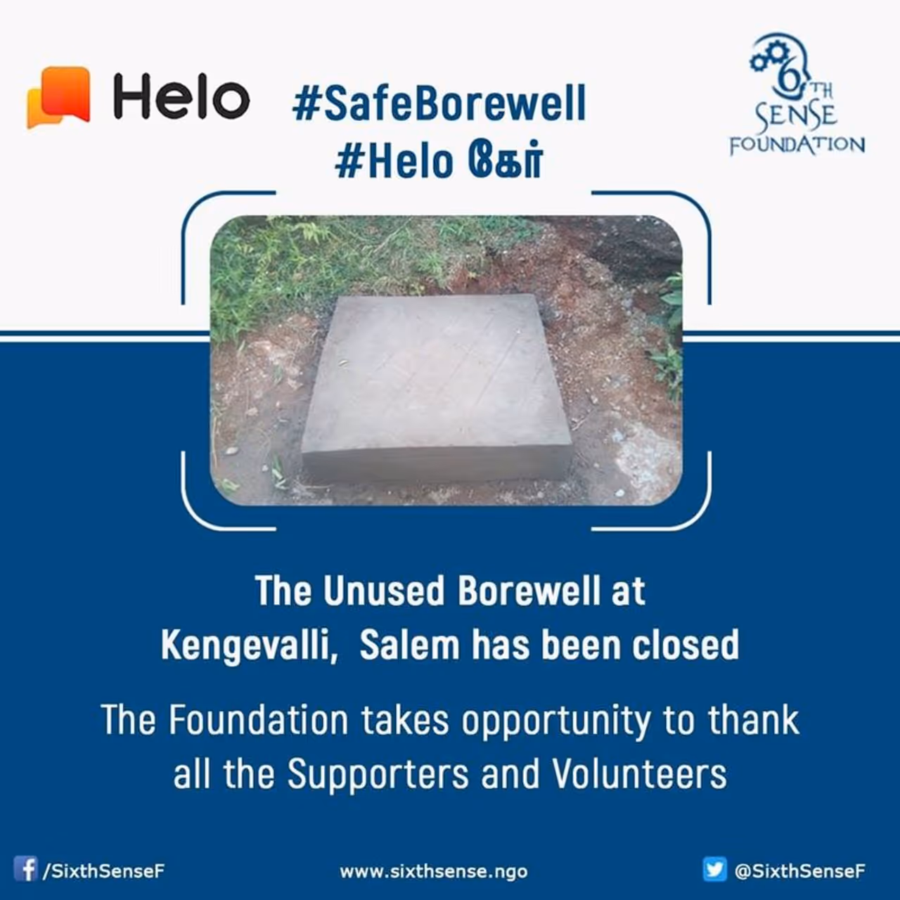 இதுதொடர்பான விபரங்களை #safeborewell விழிப்புணர்வு பிரச்சாரத்துடன் சமூக ஊடகங்களில் பரவ விட்டதை அடுத்து அரசு உடனடியாக நடவடிக்கை எடுத்தது. மூடப்படாமல் இருந்த ஆழ்துளைக்கிணறு சிமெண்ட் பூசி முழுவதுமாக மூடப்பட்டது. இதையடுத்து அந்த அமைப்பைச் சேர்ந்தவர்கள் ஆழ்துளைக்கிணற்றை மூட உதவி செய்த அனைவருக்கும் நன்றி தெரிவித்துள்ளனர். தன்னார்வ தொண்டர்களின் இந்த முயற்சிக்கு பொதுமக்கள் பாராட்டு தெரிவித்தனர்.