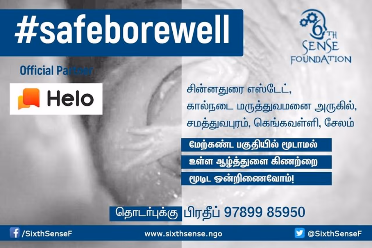 இந்த நிலையில் சேலத்தில் மூடப்படாமல் இருந்த ஆழ்துளைக்கிணறு, சமூக நல அமைப்பு ஒன்றின் முயற்சியுடன் மூடப்பட்டிருக்கிறது. சேலம் மாவட்டம் கெங்கவல்லி அருகே இருக்கிறது சமத்துவபுரம். இங்கிருக்கும் சின்னத்துரை எஸ்டேட்டில் ஆழ்துளை கிணறு ஒன்று மூடப்படாமல் இருந்துள்ளது. இதையடுத்து 'சிக்த் சென்ஸ்' என்கிற தொண்டு நிறுவனத்தின் கவனத்திற்கு இது சென்றது. கடந்த 5ம் தேதி அந்த அமைப்பைச் சேர்ந்தவர்கள் 'ஹலோ' என்கிற சமூக ஊடகத்தின் வாயிலாக ஆழ்துளைக்கிணற்றை மூடுவதற்கான முயற்சிகளை எடுத்தனர்.