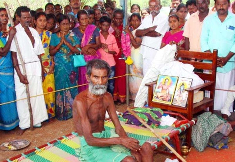 சிவகங்கை அருகே, பாசாங்கரை என்ற ஊரைச் சேர்ந்தவர் இருளப்பசாமி. 77 வயதான இவர், சிறு வயதிலிருந்தே தீவிர சிவபக்தர். சிவன் கோயில்களுக்கு நடந்தே செல்வது இவர் வழக்கம். இந்நிலையில் கடந்த சில தினங்களுக்கு முன்பு , “செப்டம்பர் 12 நள்ளிரவு 12 மணி முதல் 13-ம் தேதி அதிகாலை 5 மணிக்குள் ஜீவசமாதி அடையபோவதாகவும். அதன் பிறகு அன்றே சமாதி எழுப்ப வேண்டும்” என்று அறிவித்தார். இதுதொடர்பாக போஸ்டர்களும் ஒட்டப்பட்டன.