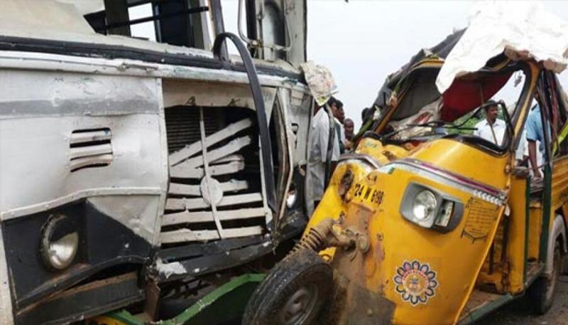 இவர்களுடன் சென்றாயனின் மாமியார் பொன்னுத்தாய் (55) என்பவரும் சென்றார். ஆட்டோவை தேனி சுக்குவாடன் பட்டியை சேர்ந்த டிரைவர் ராமு(20) ஓட்டினார். இந்த ஆட்டோ தேனி- மதுரை சாலையில் கொண்டம நாயக்கன்பட்டியில் சென்று கொண்டிருந்தது. அப்போது ராமநாதபுரத்தில் இருந்து தேனி நோக்கி அரசு பேருந்து எதிர்பாராத விதமாக ஆட்டோ மீது நேருக்கு நேர் மோதியது. இதில் ஆட்டோ அப்பளம் போல் நொறுங்கியது.