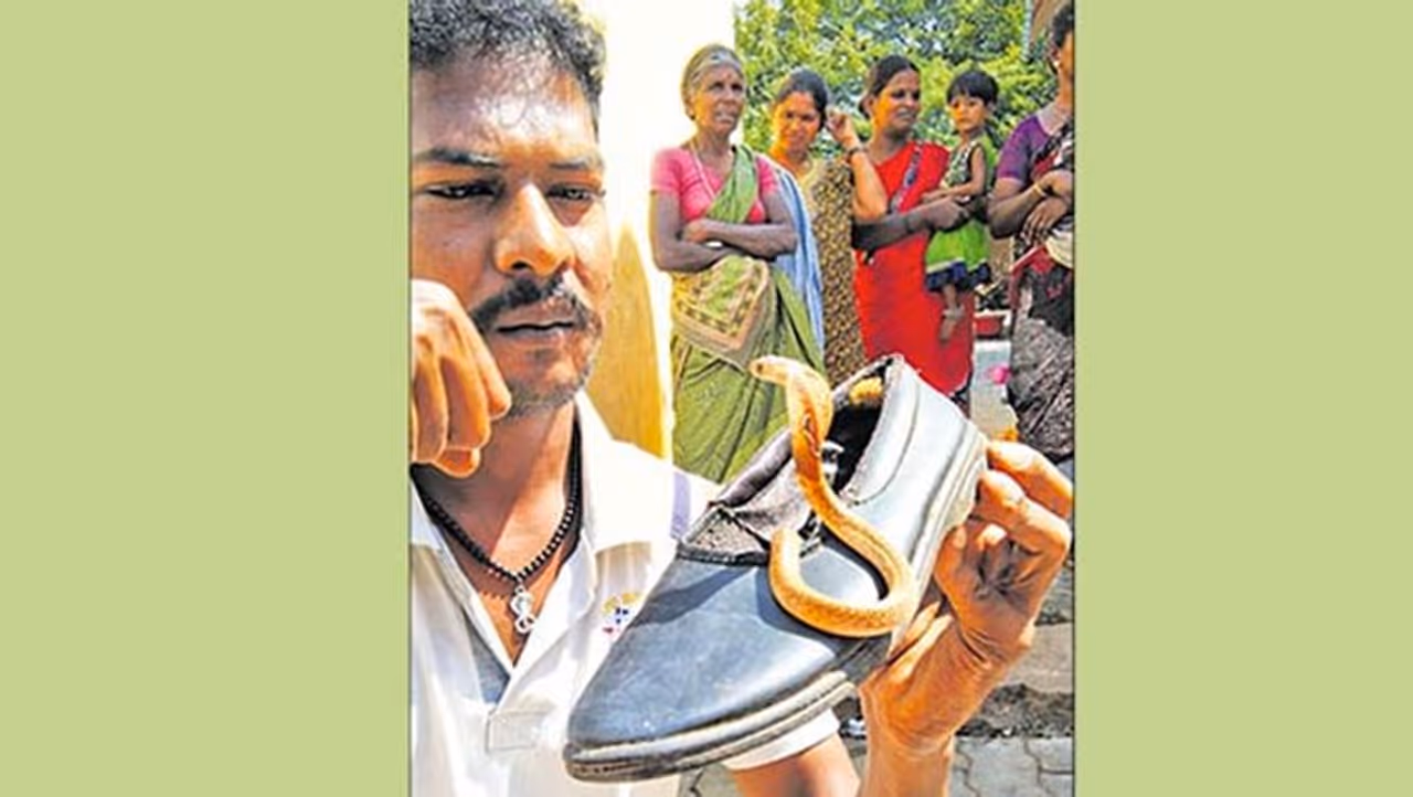 பின்னர், அவசர, அவசரமாக தனது ‘ஷூ’வை எடுத்து காலில் மாட்ட முற்பட்ட போது புஸ்ஸ்ஸ் என்ற சத்தம் கேட்டது மற்றும் ‘ஷூ’வுக்குள் ஏதோ இருப்பதை உணர்ந்தாள். இதனையடுத்து, அந்த சிறுமி ‘ஷூ’வை அணியாமல் அதன் உள்ளே பார்த்தபோது அதில் ஒரு பாம்பு சுருண்ட நிலையில் பதுங்கி இருந்தது. இதனால், பயந்து சிறுமி அலறி கூச்சலிட்டார். பின்னர், அந்த ‘ஷூ’வை சிறுமி தூக்கி எறிந்துள்ளார்.