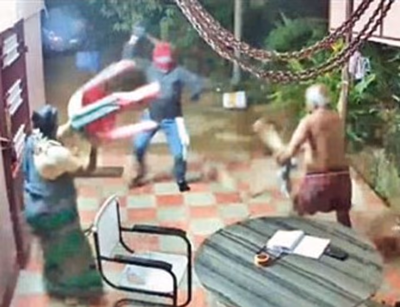 நெல்லை மாவட்டம் அம்பாசமுத்திரம் அருகே உள்ள கல்யாணி புரத்தில் வயதான தம்பதி இருக்கும் வீட்டில் கொள்ளையர்கள் அருவாளோடு புகுந்தனர் . எனினும் பயம் கொள்ளாத அந்த தம்பதி கொள்ளையர்களை அடித்து விரட்டினர் . இது தொடர்பான காணொளி இணையத்தில் வைரலாக பரவி வருகிறது .
